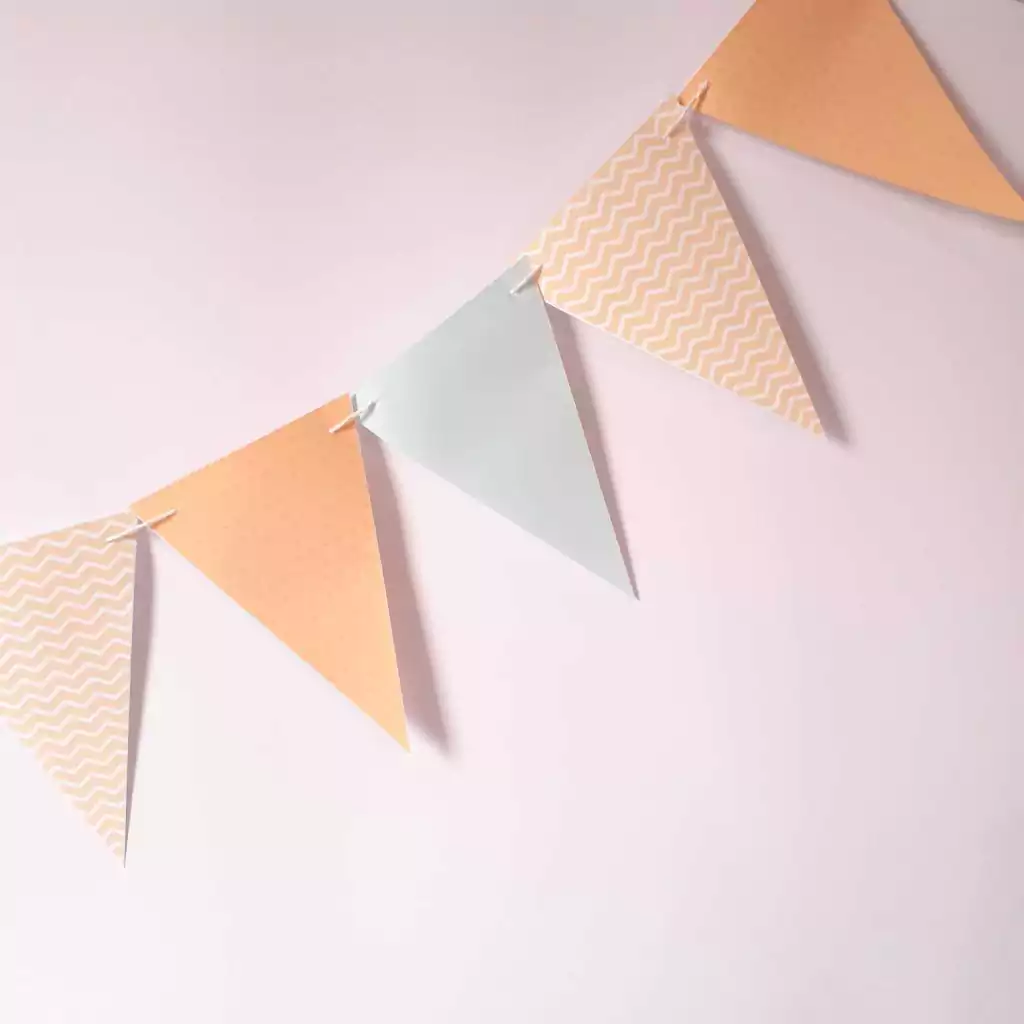 1 Varal com 12 bandeiras em triângulo com 3 estampas diferentes (12cm x 19cm cada bandeira e 3 metros de barbante)