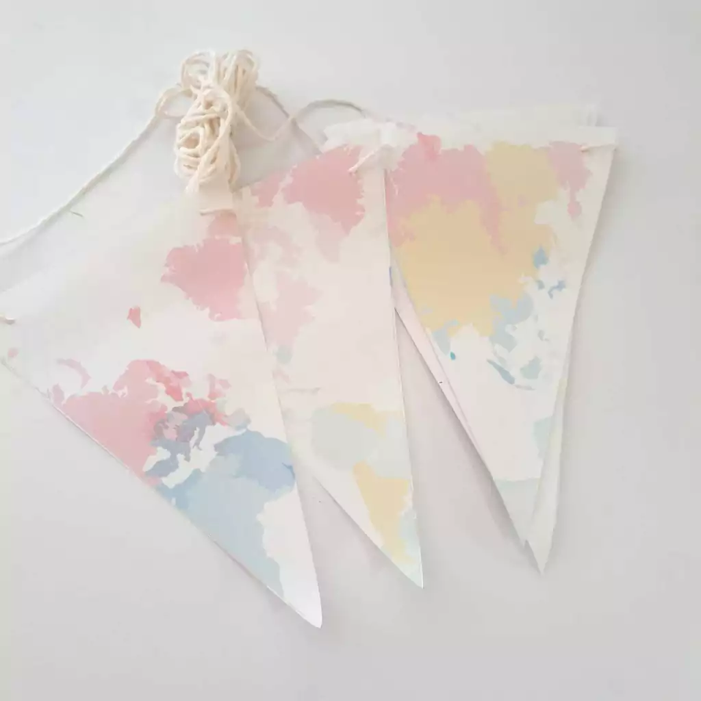 1 Varal com 12 bandeiras em triângulo com estampa Mapa Mundi Candy Colores (12cm x 19cm cada bandeira e 4 metros de barbante)